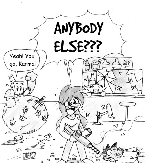 Heeyyy, who changed Karma's wardrobe to green?? >:D Ah well. Change is good and for some reason I can't place, I think Max looks especially cute in this picture. LOL...mebbe its just me ;D This was da Sporker's half of an art exchange with me. I LUV art exchanges ^_^ | ||
