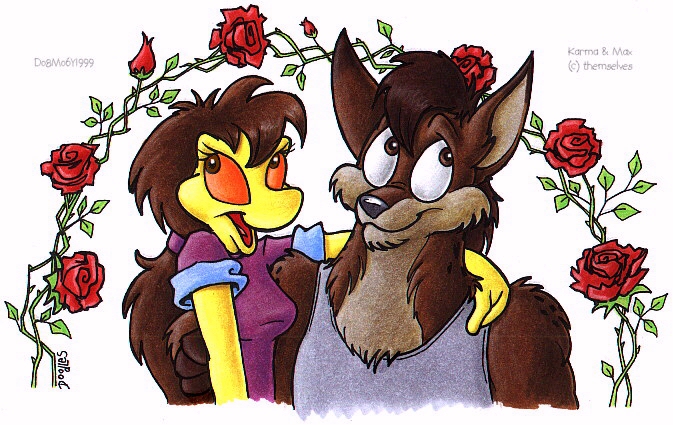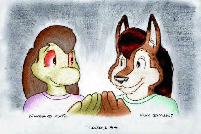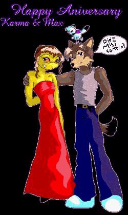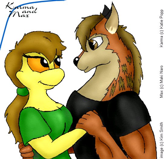 Some of you know us as Karma Leafbarer and Sir Maximus...or maybe just as "that weird couple that drives everyone nuts." However you know us, one thing is for certain. Our undying love for one another and our unbreakable bonds of love and trust. Over the time we've known one another, quite a few artists' renderings have been created...either by request or out of the goodness of someone's heart. At any rate, I've managed to gather quite a few and decided they were in dire need of their own gallery...and therefore every picture that's been drawn for us, I've put here. With hopes you'll enjoy it, here's our gallery. ^_^