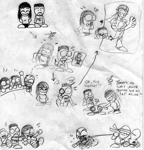 Max decided it would be amusing to draw us as what we'd look not only B4ified but in our human forms too :D He's exaggerating my violent side because he's a goober :D LOL...you know I love ya, Max ^_^ | ||
