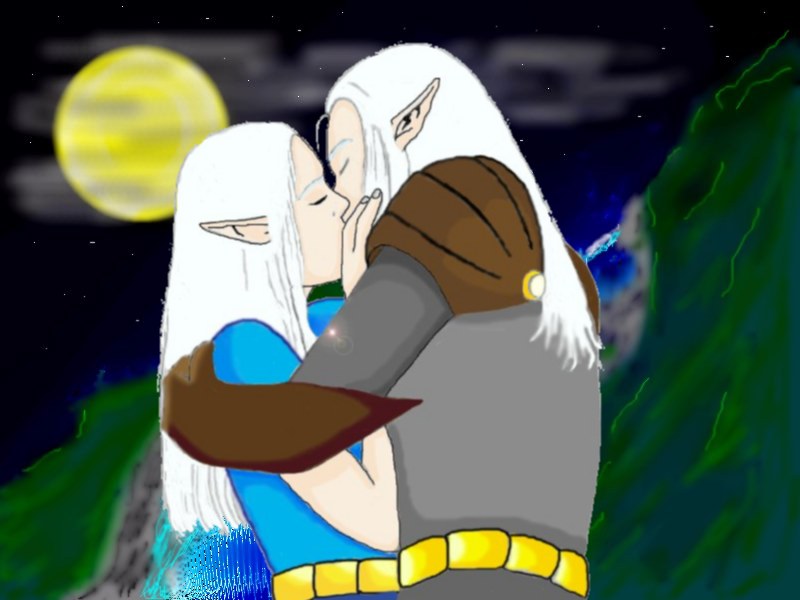Ah romance. Had enough? Too bad >:D Max and I as elves kissing by a waterfall on a moonlit night. Sketched by Saimain, colored by me, background added by Gray Lancer. | ||