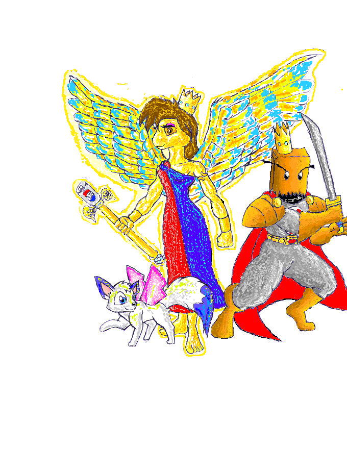 At one time I had posted in my AOL profile that I was the self-proclaimed goddess of Pepsi. Scott decided it would be funny to see what I'd really look like and so did a picture of Karma, her right hand man, Sir Maximus, and the court puppy (foxy?) Twilight. ^_^ This is SO my Halloween costume! >:D | ||