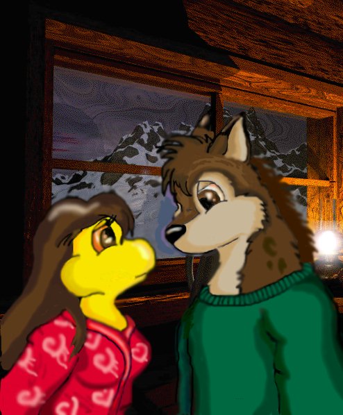 Max and I wanted to spend Christmas together this year and wished we could...::sighs:: but funding, family, and distance prevents it. Unlike some of the lazy people who superimpose backgrounds onto their pictures, I drew us completely with a mouse after finding the background on an AOL file search. ::sighs:: If only this were a reality... | ||