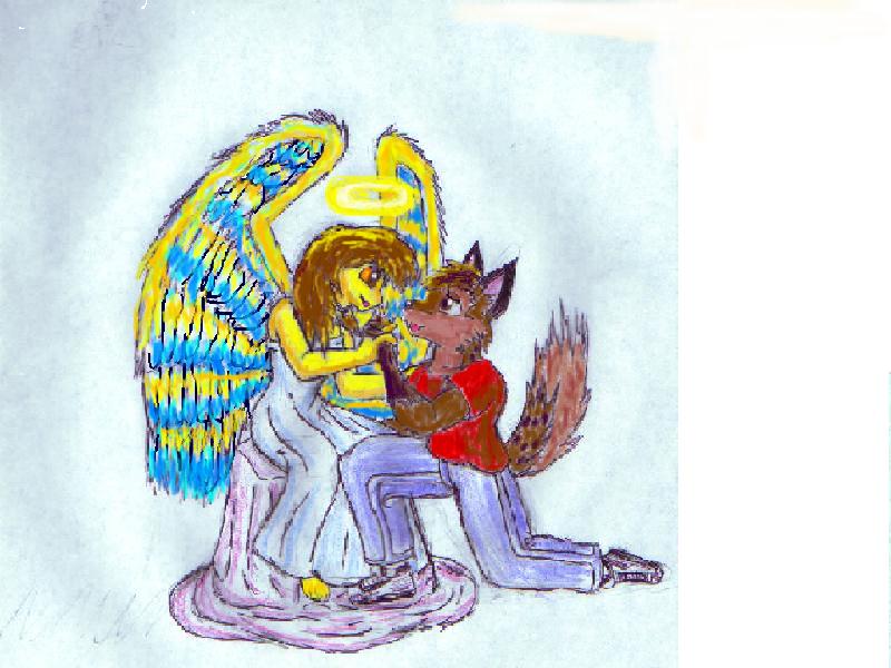 Scott offered to do this one when Max was depressed and I was attempting to cheer him up. I asked several artists, in fact, but he's the only one who's come through. I guess its after the fact now that he's successfully passed his depression on to me. But anyway, Max sometimes calls me "angel" and so Scott thought this would be a cute idea. I like it. Sorry, I'm not in a very good mood at the moment. I have my reasons. | ||