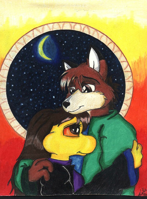 Okay, first of all this is NOT a yiffy pic and nor is it implying anything. Max and I are just takin' a nap together. Anyway, we acted this nap scene out one night as we were saying goodnight to each other in the MUCK apartment we were sharing. I thought it was just so cute how they had fallen asleep together that I felt inspired the next day in art class when the teacher asked us to sketch the first thing that came to mind when we heard "Peace". Quote has been taken from an Elfquest comic. | ||