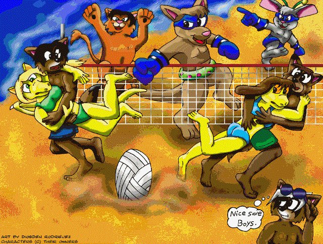 Volleyball...who DOESN'T love it? MEMEMEMEME! Well I'd like it better if the ball didn't have an unnatural attraction to my head. But awww....looks like Max saved me from a head trauma... THIS time ;D Kitan came pretty close to getting one too, huh? ^_^ | ||